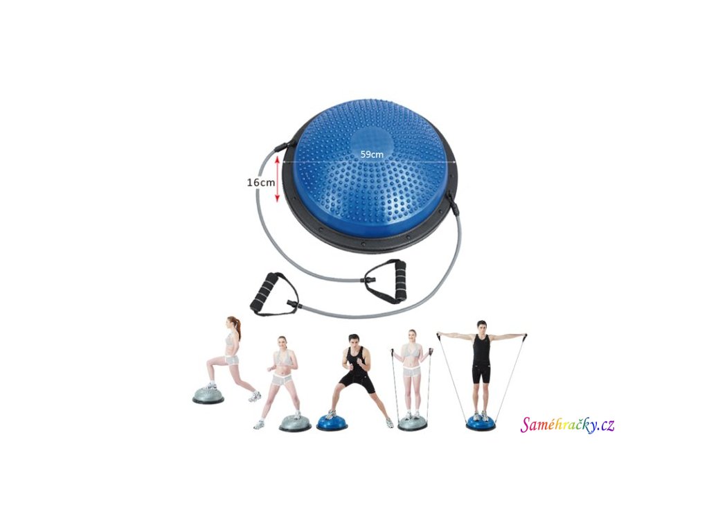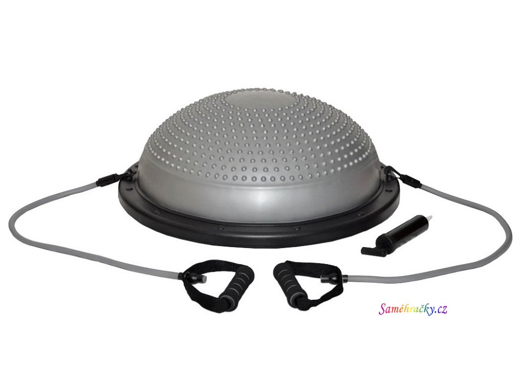 Cvičební masážní a balanční vzduchová podložka Dynaso bosu s pevnou plastovou základnou. Balanční podložka je ideální pro fitness, aerobik, fyzioterapii, rehabilitaci, rekonvalescenci a je vhodný i na cvičení doma. Nestabilní plocha přispívá ke zlepšení koordinace a rozvoji stability, napomáhá k odstranění bolesti zad, posílení břišních svalů a komplexně posiluje svaly celého těla. Cvičení rovněž zapojuje hluboký stabilizační systém trupu a páteře. Aktivuje hluboko uložené svaly, které se často při cvičení nezapojují. Pomocí přiložených gumových expandérů procvičíte svaly horních i dolních končetin. Cvičení je vhodné pro všechny věkové kategorie od začátečníků až po vrcholové sportovce, např. pro sportovní přípravu nebo rehabilitaci hokejistů a fotbalistů. Ballance ball lze používat z obou stran, tím je cvičení variabilnější. Upuštěním tlaku lze také upravovat obtížnost cvičení.