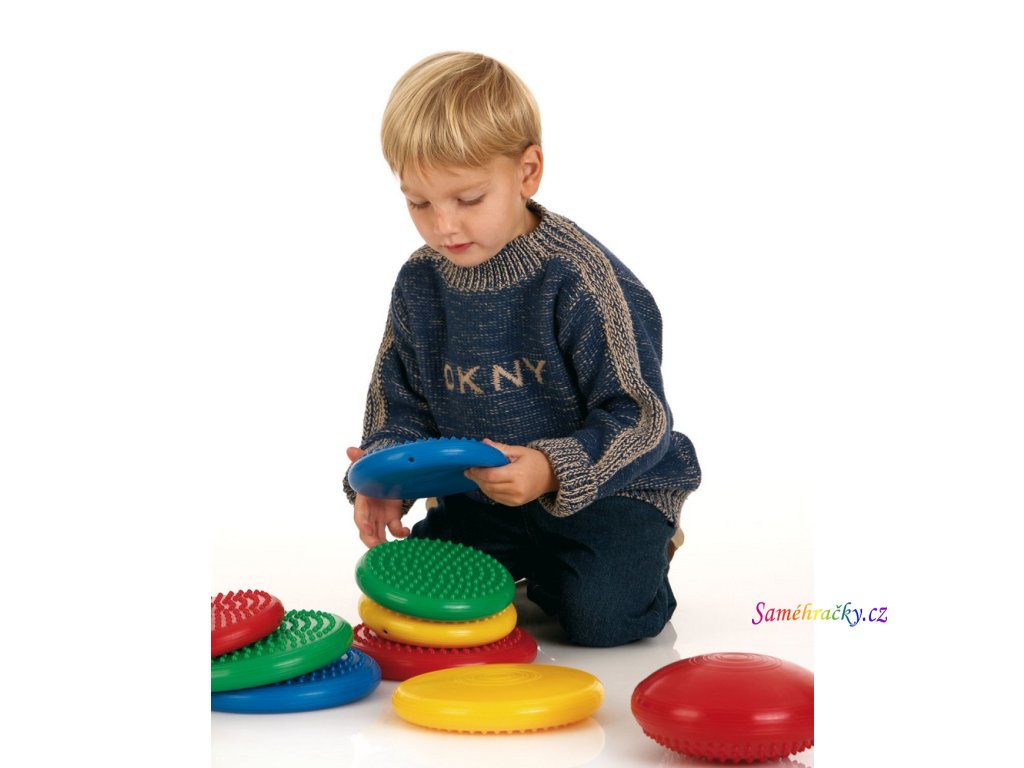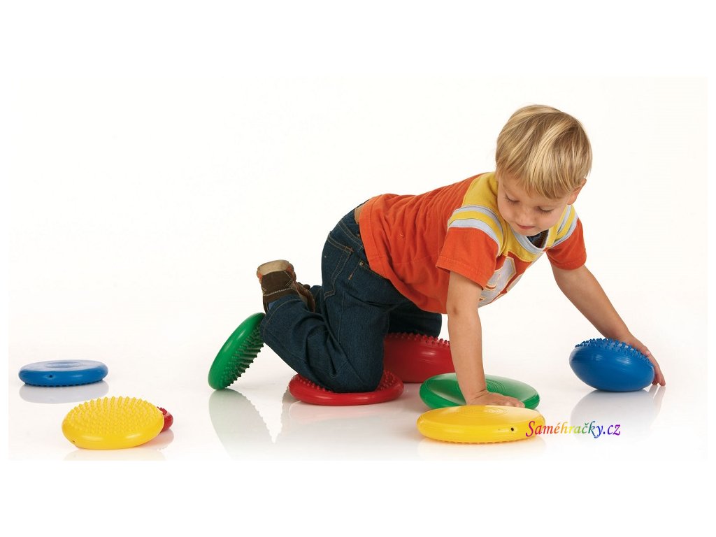 Jedna strana balanční čočky je hladká a druhá má masážní bodlinky ke stimulaci reflexních zón.