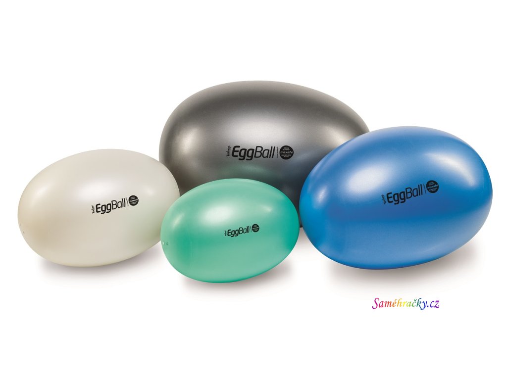 Charakteristický oválný tvar míče EggBall Maxafe zajišťuje větší kontaktní plochu s podlahou, což přináší vyšší stabilitu při cvičení. Jeho prodloužený tvar umožňuje pohodlné sezení i dvěma osobám najednou, což ocení například terapeuti i rodiny.