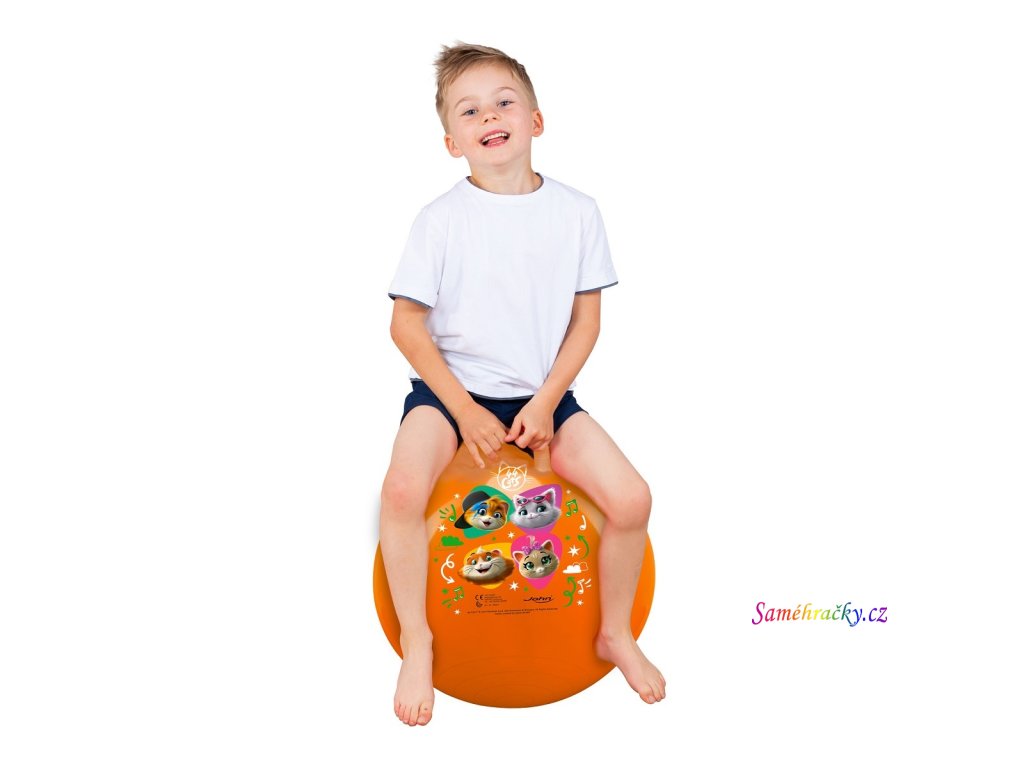Hopsadlo s rukovítky s motivem televizního animovaného seriálu 44 Cats. Skákací míč je vhodný pro hru dětí, ale také pro cvičení a posilování. Skákací míč je výborná pomůcka k tréninku stability. Rozvíjíme pohybovou schopnost, rovnováhu a obratnost. Skákání na míči rovněž zpevňuje a posiluje svaly.