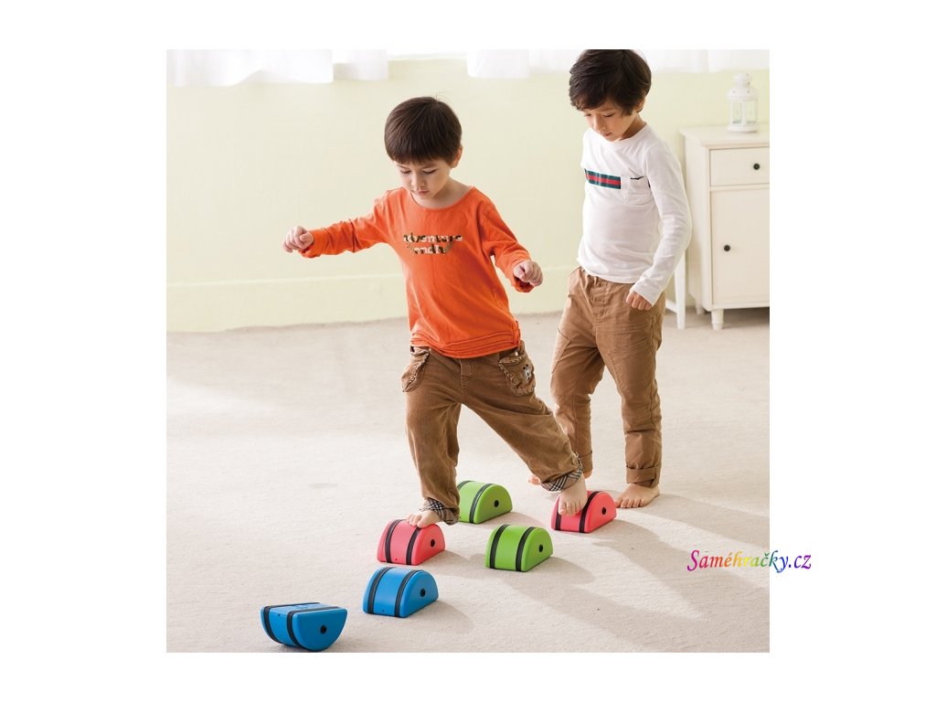 Balanční chůdy vyžadují u dětí udržování stability a rovnováhy při chůzi. Děti se učí používat nohy i ruce zároveň, dochází k posílení svalů a stimulaci drobných svalů chodidla. Balanční chůdy lze používat z obou stran což dětem umožňuje vyzkoušet si různé úrovně náročnosti. Oblázkovité chůdy jsou vyrobeny z pevného materiálu, mají gumové protiskluzové pásky a nastavitelnou délku provázků.