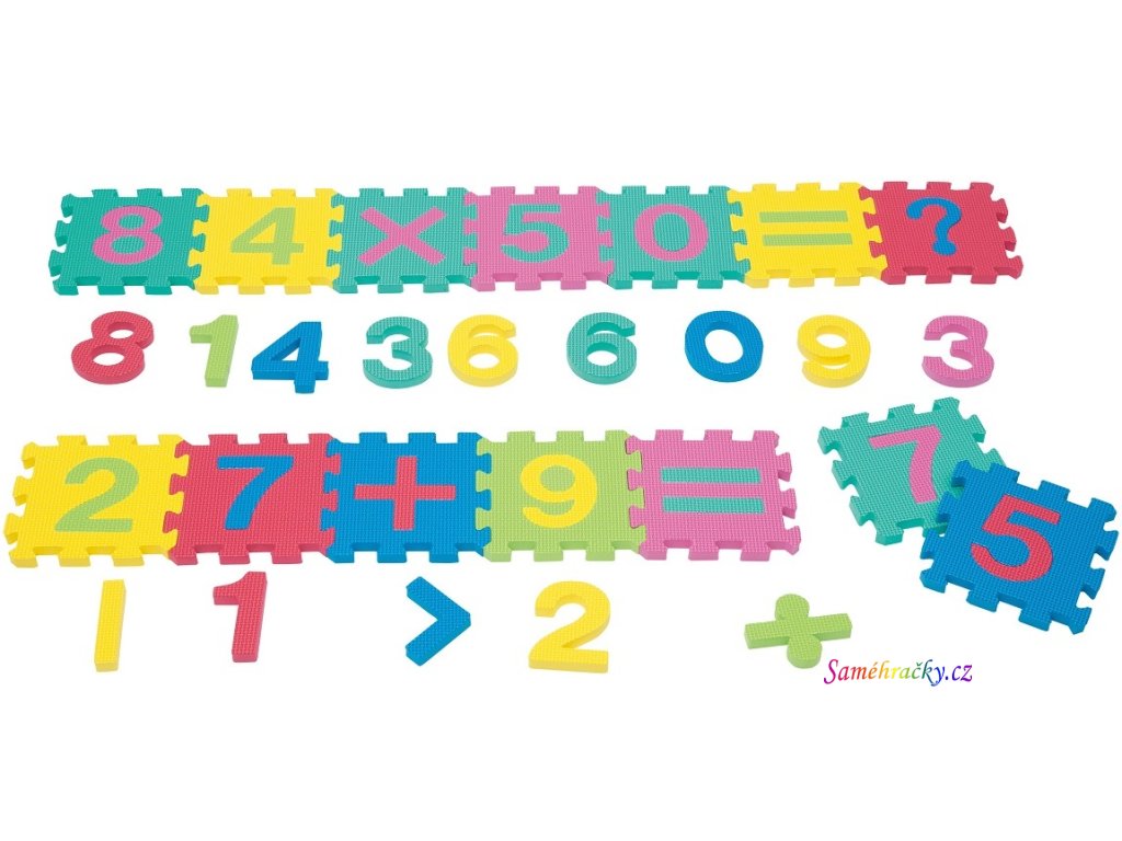 27 pěnových podložek s motivem Čísel a Znamének uprostřed, které lze vyjmout a vkládat jako puzzle. Pěnové puzzle je skvělý doplněk pro hry dětí a současně může sloužit jako ochrana před prochladnutím od studené podlahy. Puzzle s čísly jsou vhodné do mateřské nebo základní školy, na domácí učení, ale také pro práci s dětmi se specifickými poruchami učení. Výrobek splňuje požadavky EU, certifikace EN71.