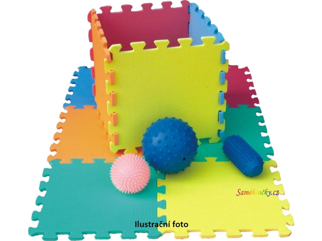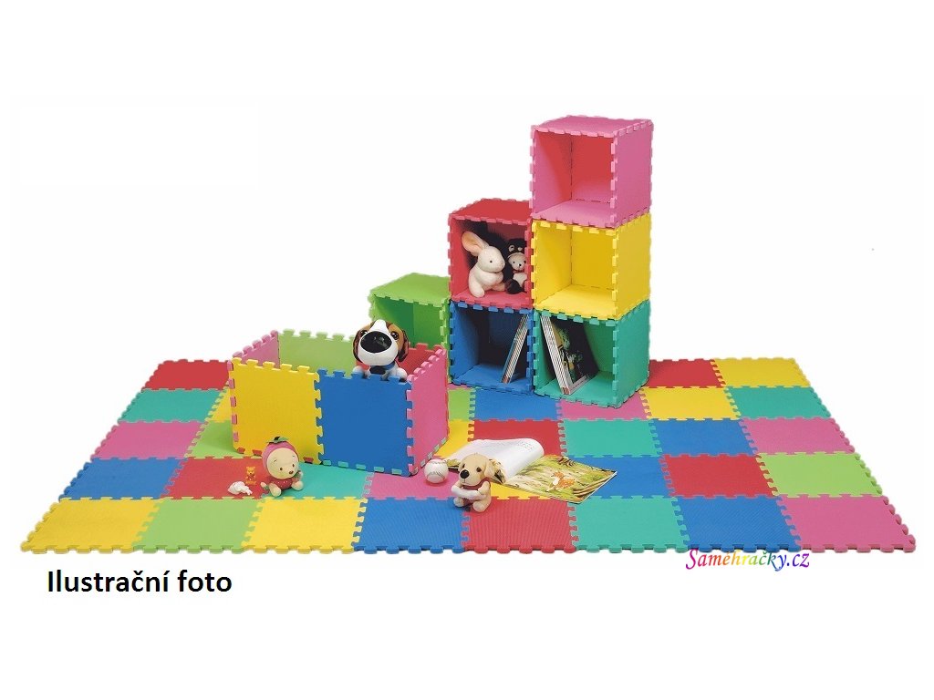 - Puzzle ve tvaru čtverců, v různých barvách s vroubkovaným povrchem, lze skládat do sebe - podložka, domeček, krabice....