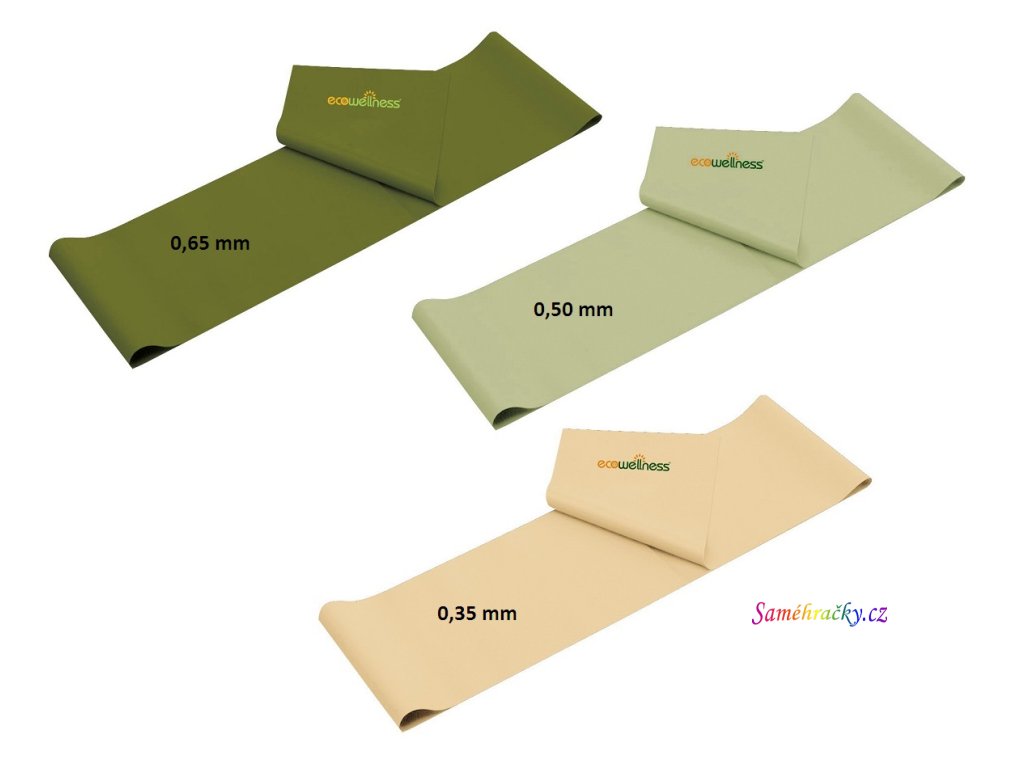 Sada 3 ks cvičebních gum pro začátečníky, rehabilitaci, pro kondiční cvičení a pro posilování. Tato víceúčelová cvičební pomůcka je ideální pro posílení horní a dolní části těla. Cvičební guma zlepšuje pozitivní i negativní sílu svalů, jejich mohutnost a pevnost, rozsah pohybu a svalovou koordinaci (tj. spolupráci svalů a svalových skupin).