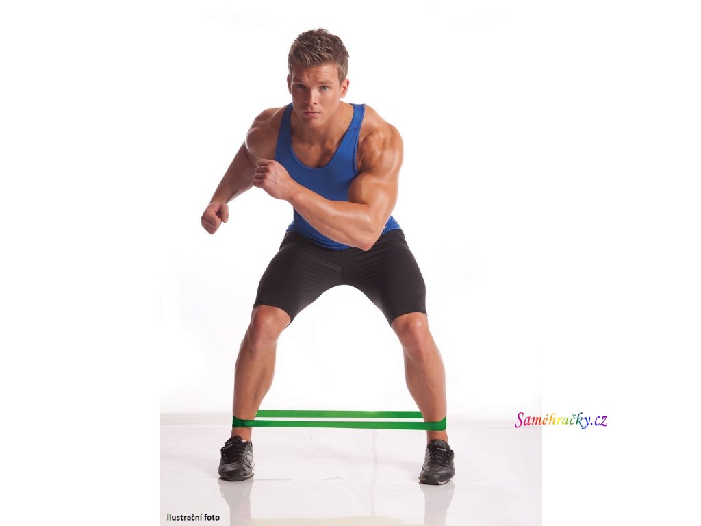 Kruhová posilovací guma má široké využití - lze s ním cvičit ve stoje, v sedě i na zemi.