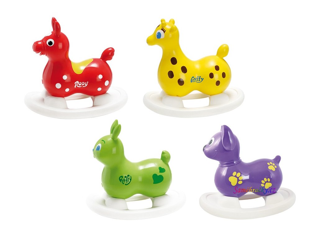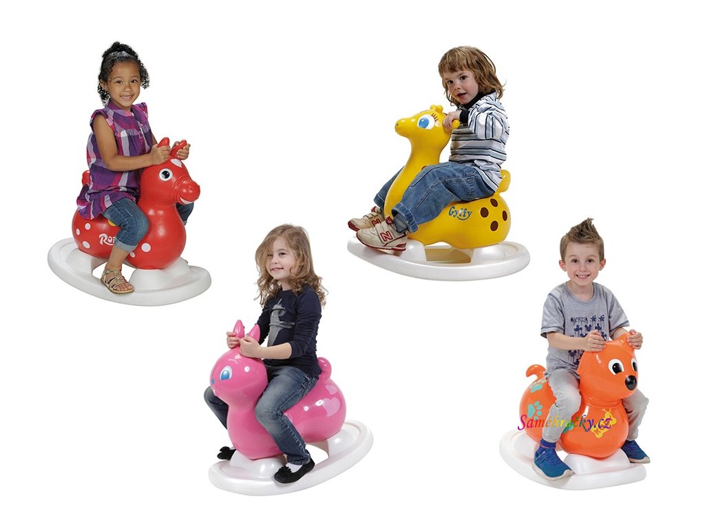 Pevný plastový podstavec - houpačka pod koníka Rody, žirafu Gyffy a Raffy. Zvířátko značně podhustíme a nožičky zasuneme do otvorů v plastové houpačce. Opět nahustíme. Instalaci musí provést dospělý. Při použití výrobku se rovněž doporučuje dohled dospělé osoby. Zvířátka nejsou součástí výrobku.