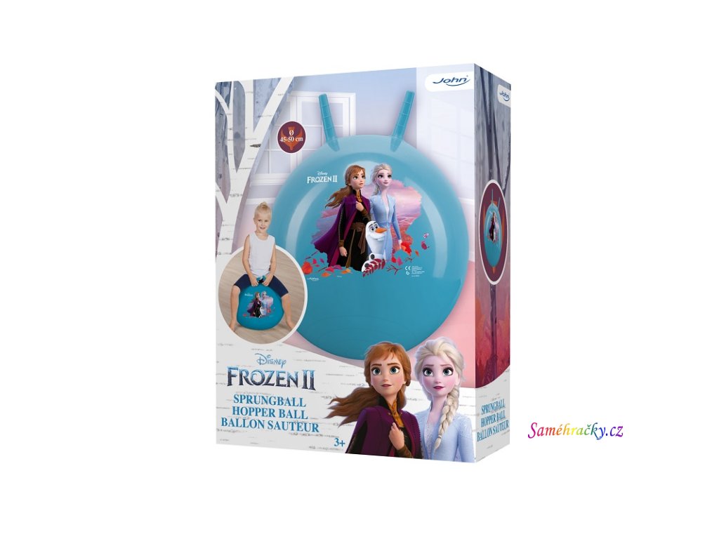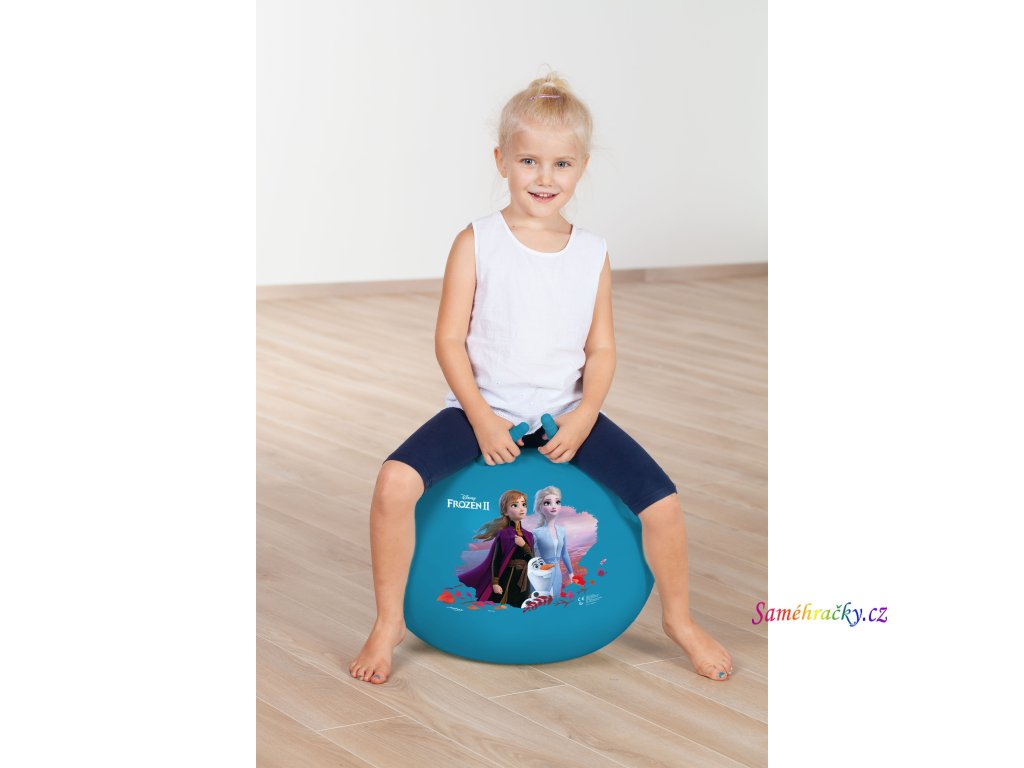 Hopsadlo s rukovítky v tyrkysové barvě s motivem pohádky Ledové království. Skákací míč je vhodný pro hru dětí, ale také pro cvičení a posilování. Skákací míč je výborná pomůcka k tréninku stability. Skákání na míči zpevňuje a posiluje svaly.