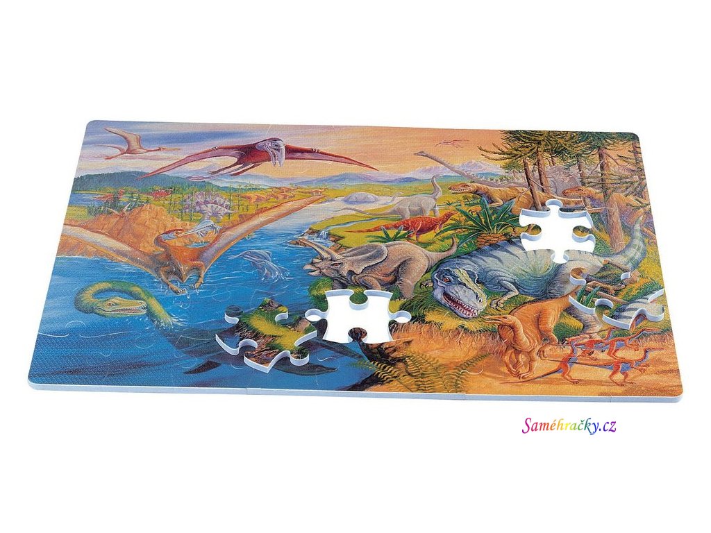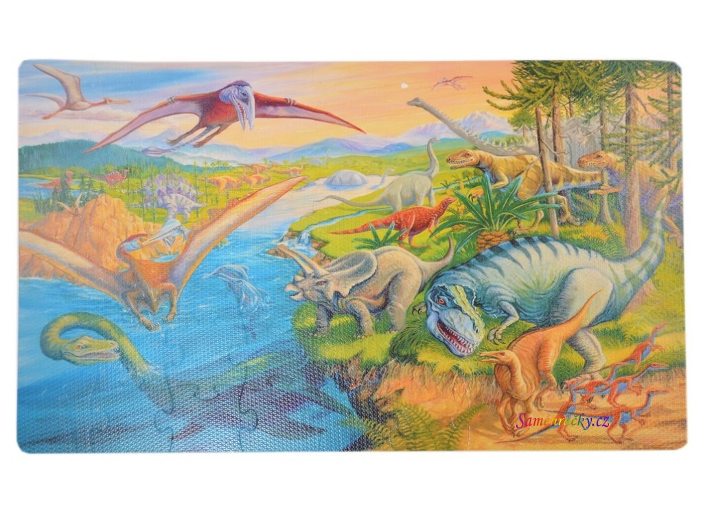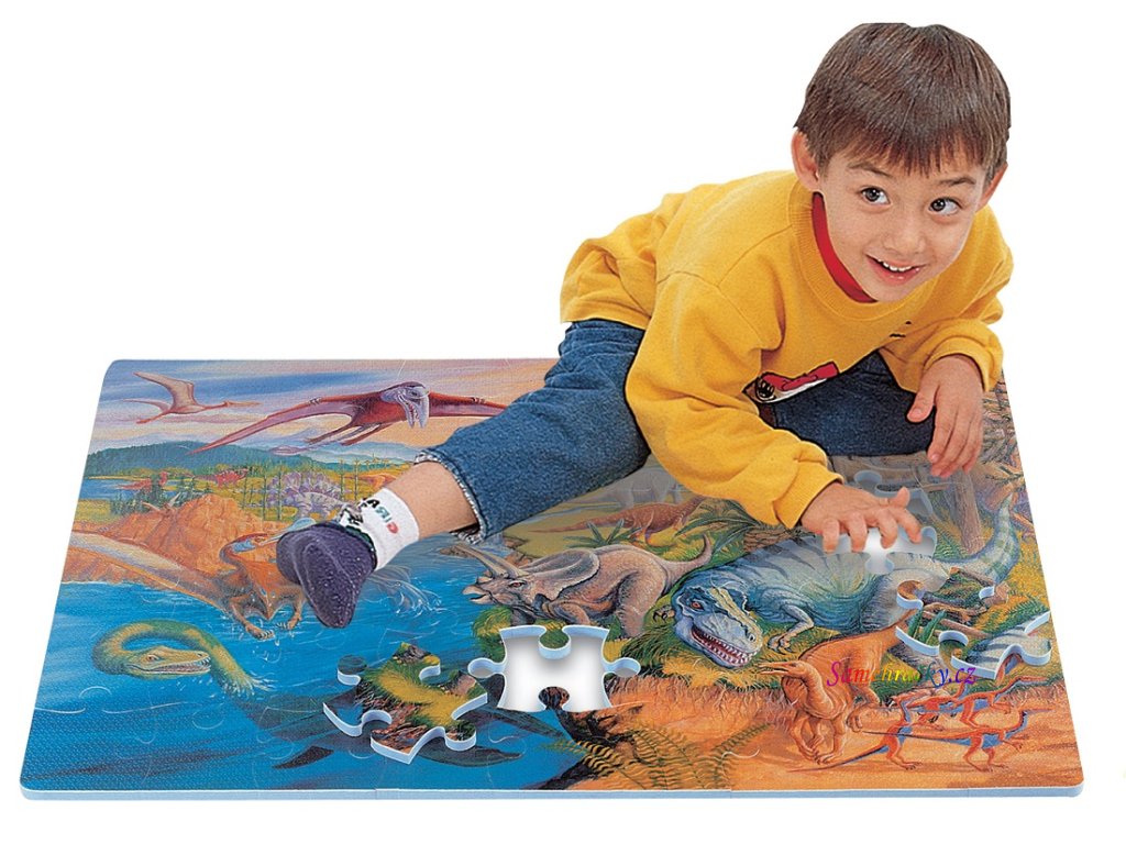 Kvalitní celopotištěné pěnové podlahové puzzle s motivem Pravěkých zvířát. S velkými dílky se lehce manipuluje, dílky přesně zapadají do sebe a výborně drží. Živé příjemné barvy přitahují dětské oči a povzbuzují k zábavě a učení. Skládání puzzle ovlivňuje vývoj dítěte, rozvíjí manuální dovednosti, stimuluje kreativitu a učí soustředění a trpělivosti. Výrobek splňuje požadavky EU. Puzzle mají certifikaci CE.