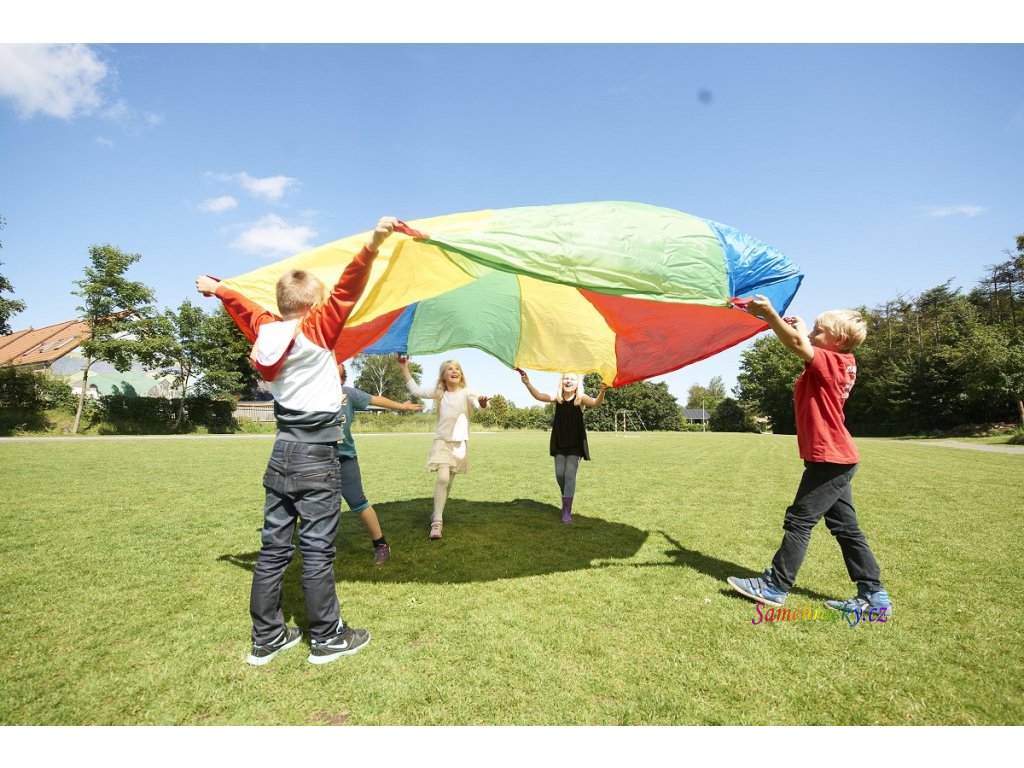 Psychomotorický padák je netradiční a velmi oblíbená cvičební pomůcka. Je to vynikající didaktická pomůcka nejen pro děti různých věkových kategorií podporující jejich psychomotorický vývoj a především pomáhá naučit se vzájemné spolupráci formou hry.