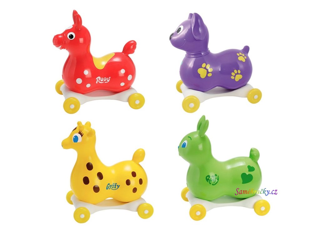 Pevný plastový podstavec s kolečky pod koníka Rody, žirafu Gyffy, Raffy a Kody. Vložte nohy do vyhrazených otvorů a skákací zvířata se změní v zábavnou a dynamickou hru na kolech. Instalaci musí provést dospělý. Při použití výrobku se rovněž doporučuje dohled dospělé osoby. Zvířátka nejsou součástí výrobku.
