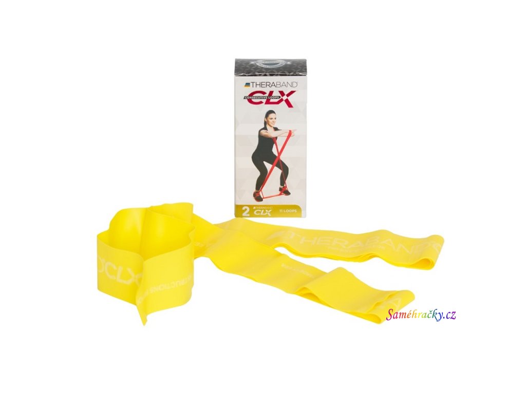 Thera-Band CLX je multifunkční cvičební pomůcka na rehabilitaci a posilování celého těla. Jedná se o elastickou posilovací gumu tvořenou propojenými smyčkami, které umožňují pohodlný úchop a poskytují mnoho poloh uchycení. Ruce i nohy můžete do smyček zasunout a nemusíte gumu držet.
